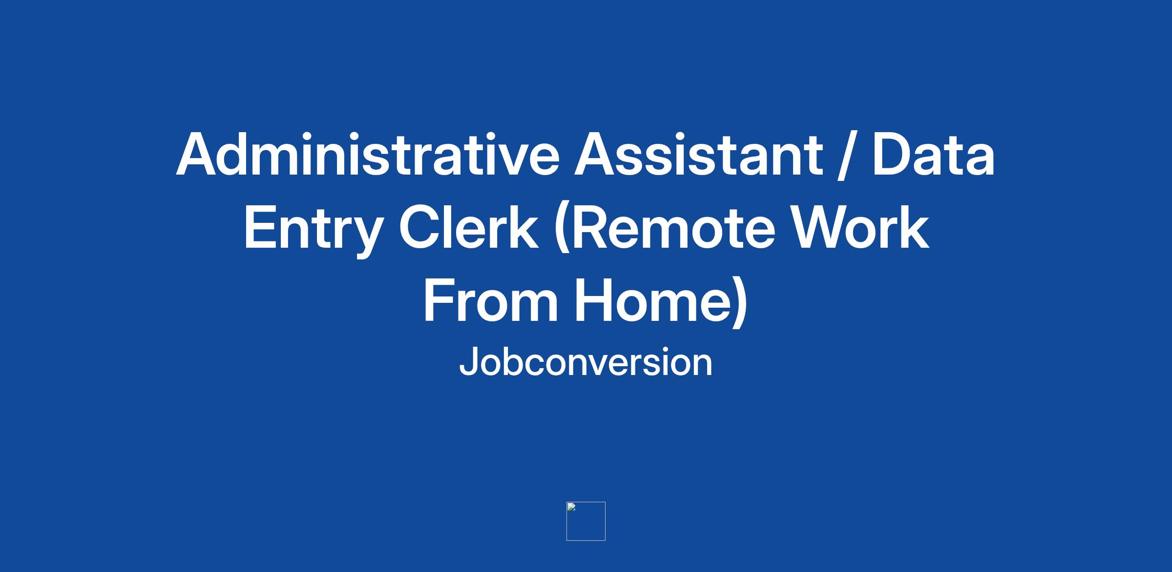 Administrative Assistant / Data Entry Clerk (Remote Work From Home)