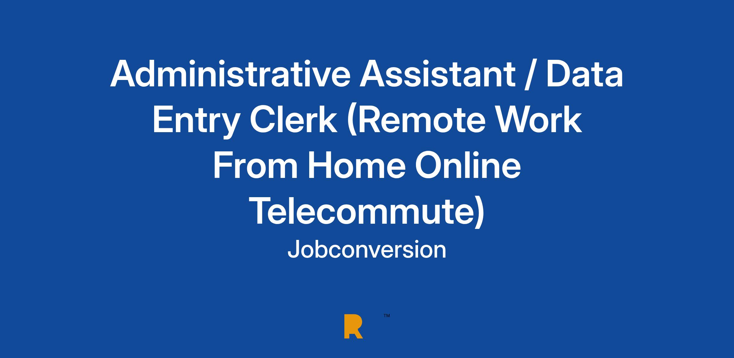 Administrative Assistant / Data Entry Clerk (Remote Work From Home Online Telecommute)
