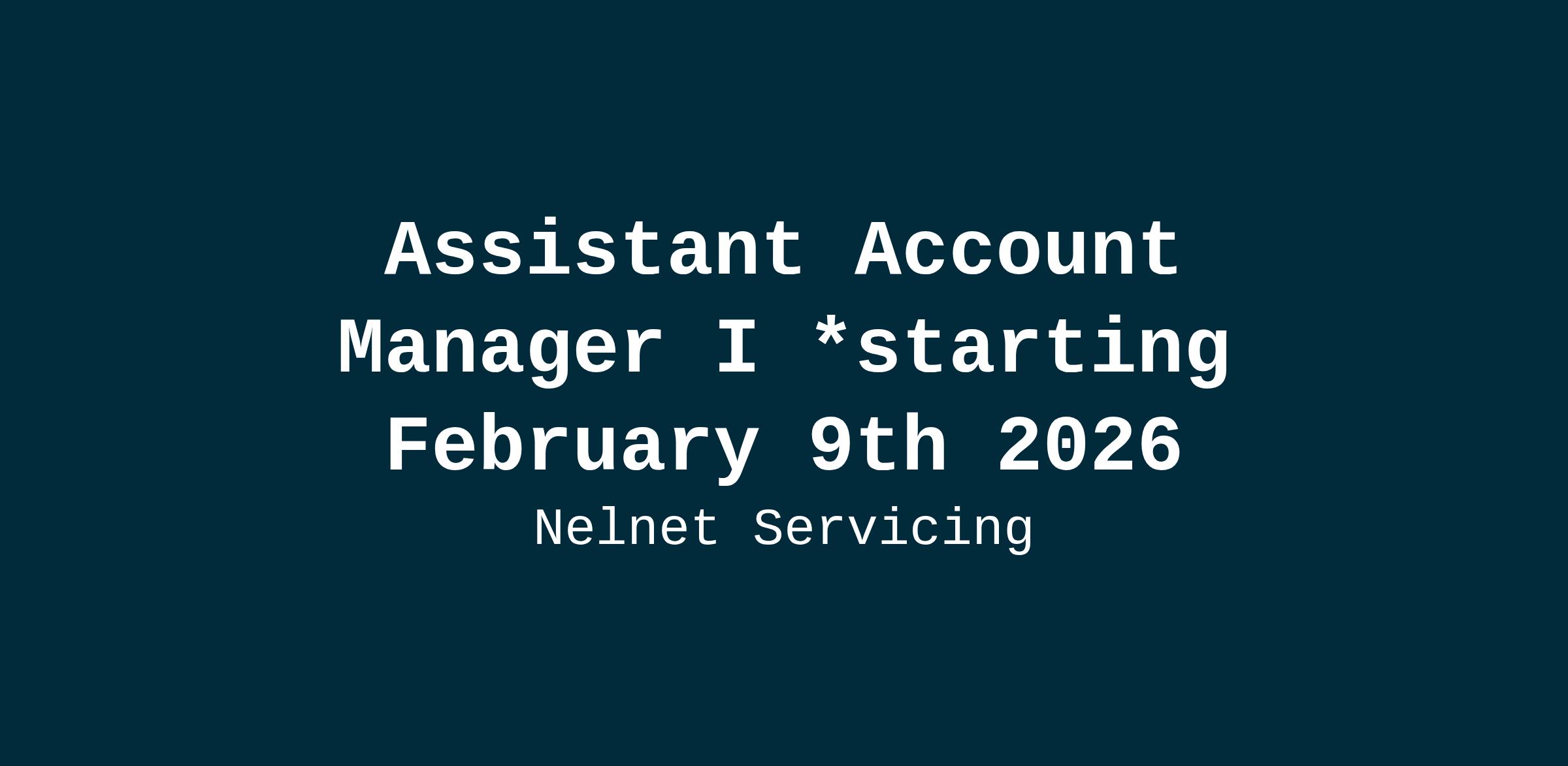 Assistant Account Manager I *starting February 9th 2026