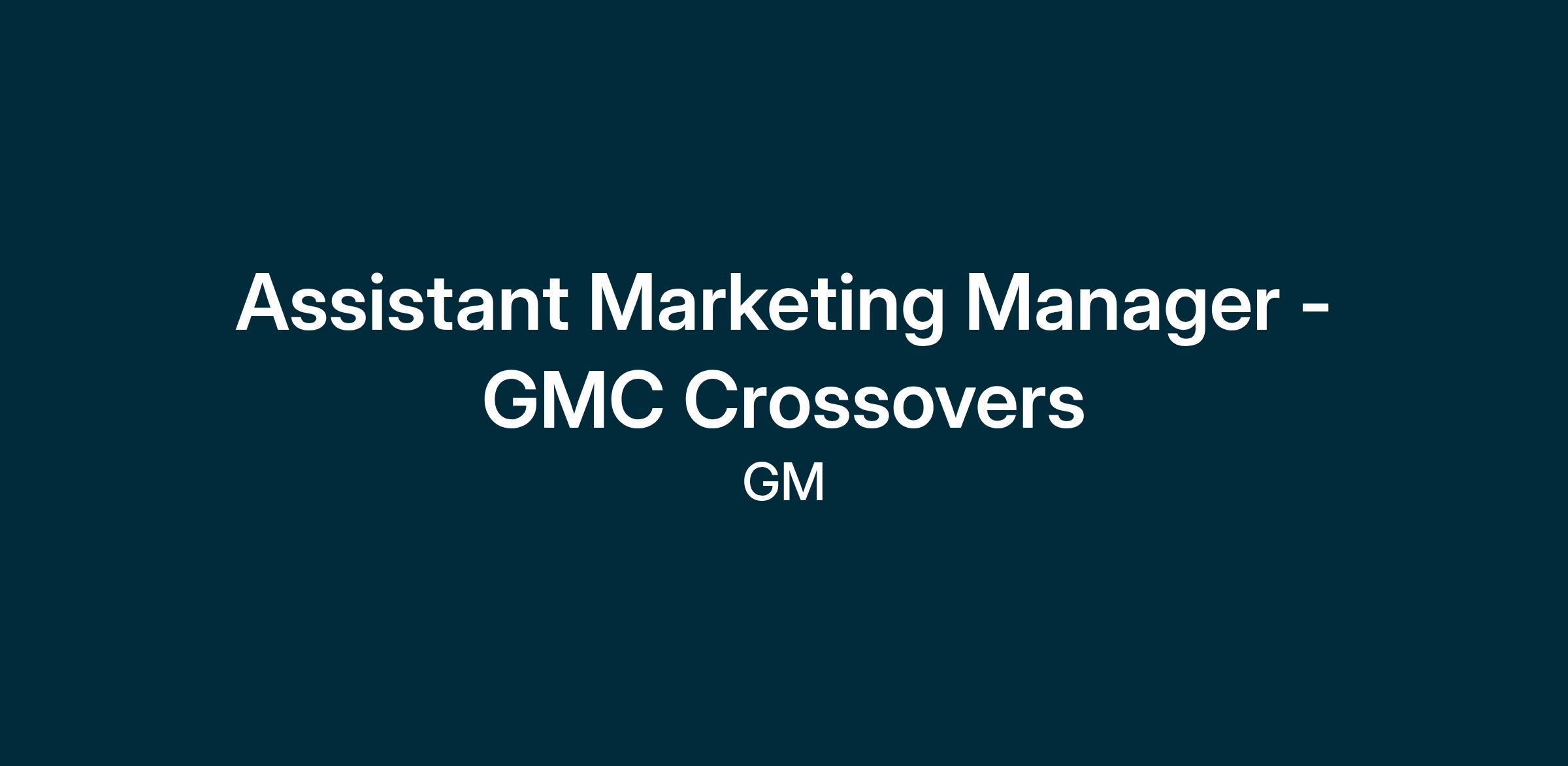 The primary purpose is to provide support and oversee the lifecycle management of the GMC Crossovers (Terrain and Acadia), including development and execution of the marketing strategy through positioning, pricing, packaging, messaging, and various cross-functional marketing activities in support of business objectives. Job responsibilities also include understanding the customer, competition, and the segment dynamics, identifying market trends, appropriate packaging and preparing for the next generation vehicles. This position reports to the GMC Crossovers Marketing Manager.