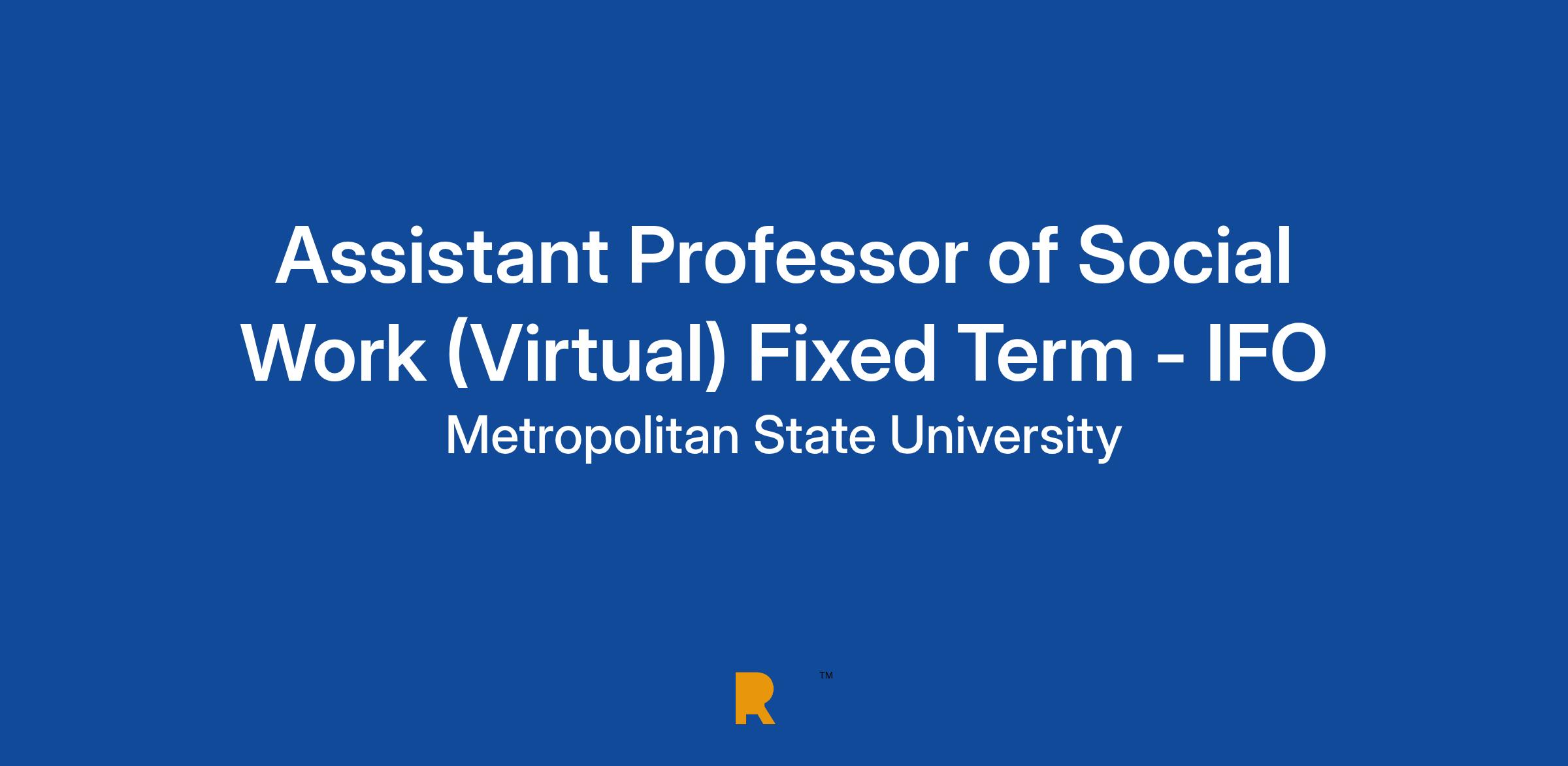 Assistant Professor of Social Work (Virtual) Fixed Term - IFOInstitution: