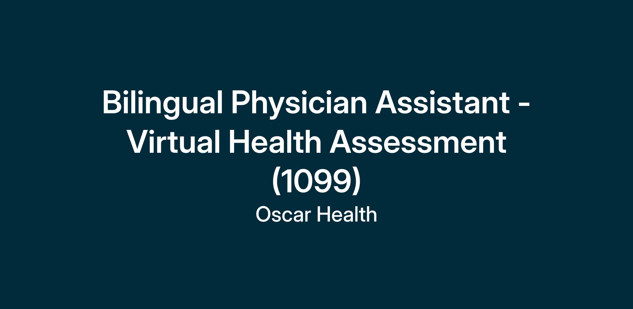 Hi, we're Oscar Medical Group. We're hiring a Bilingual (Spanish) Physician Assistant to join our Virtual Health Assessment team.