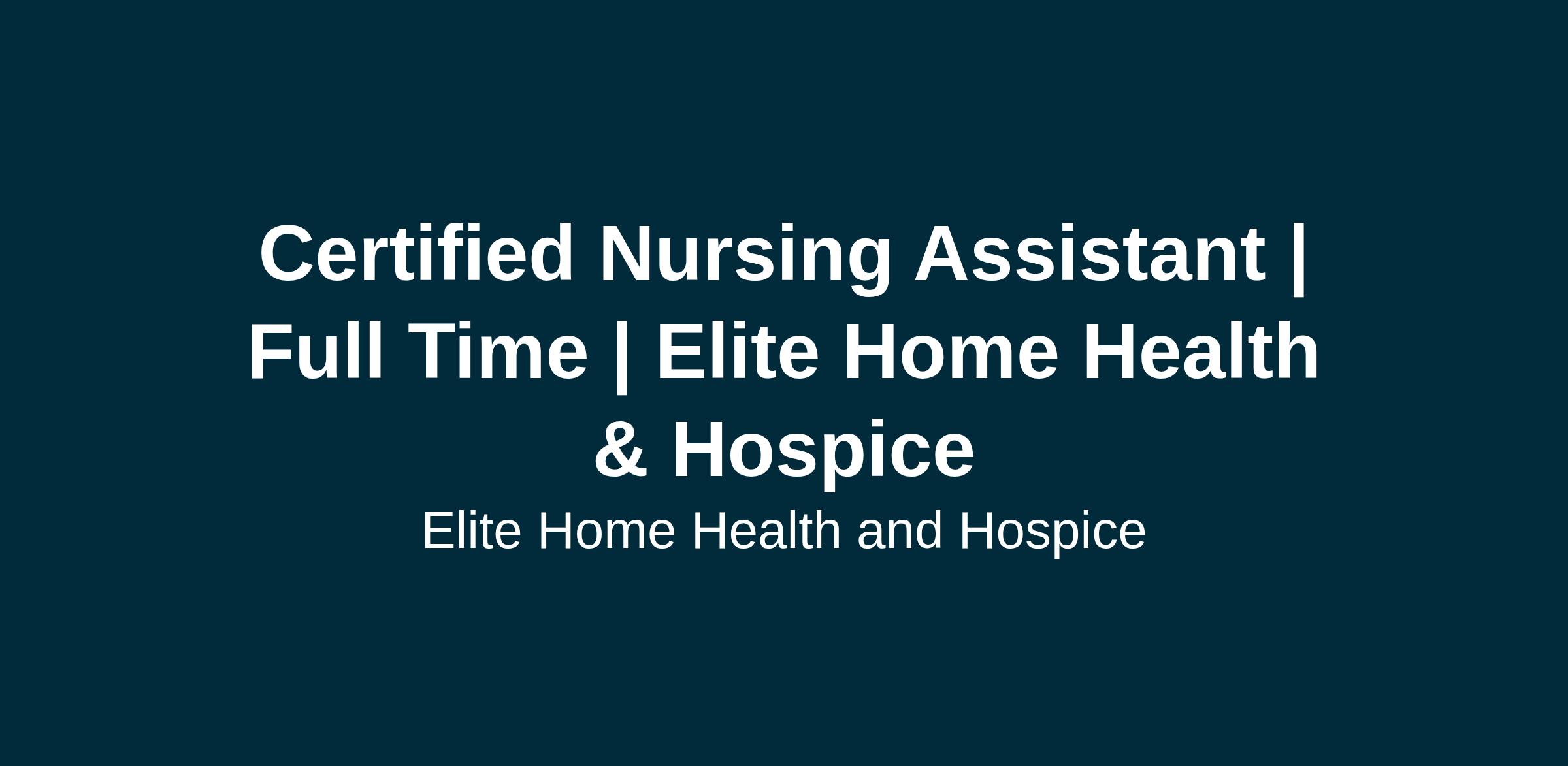 Elite Home Health & Hospice is seeking a compassionate and reliable Full Time Certified Nursing Assistant (CNA) to join our home health and hospice team. If you’re passionate about providing quality care and value teamwork, this could be a great fit!