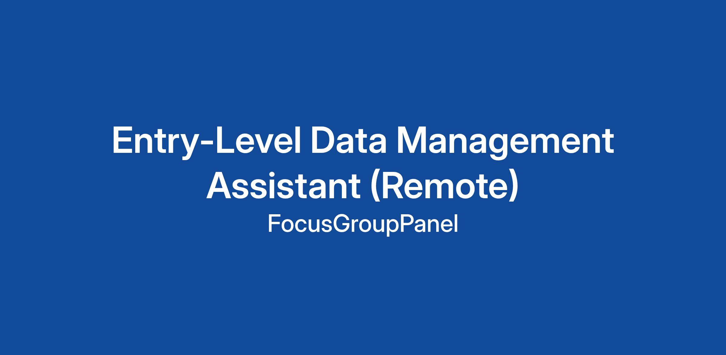 Entry-Level Data Management Assistant (Remote)