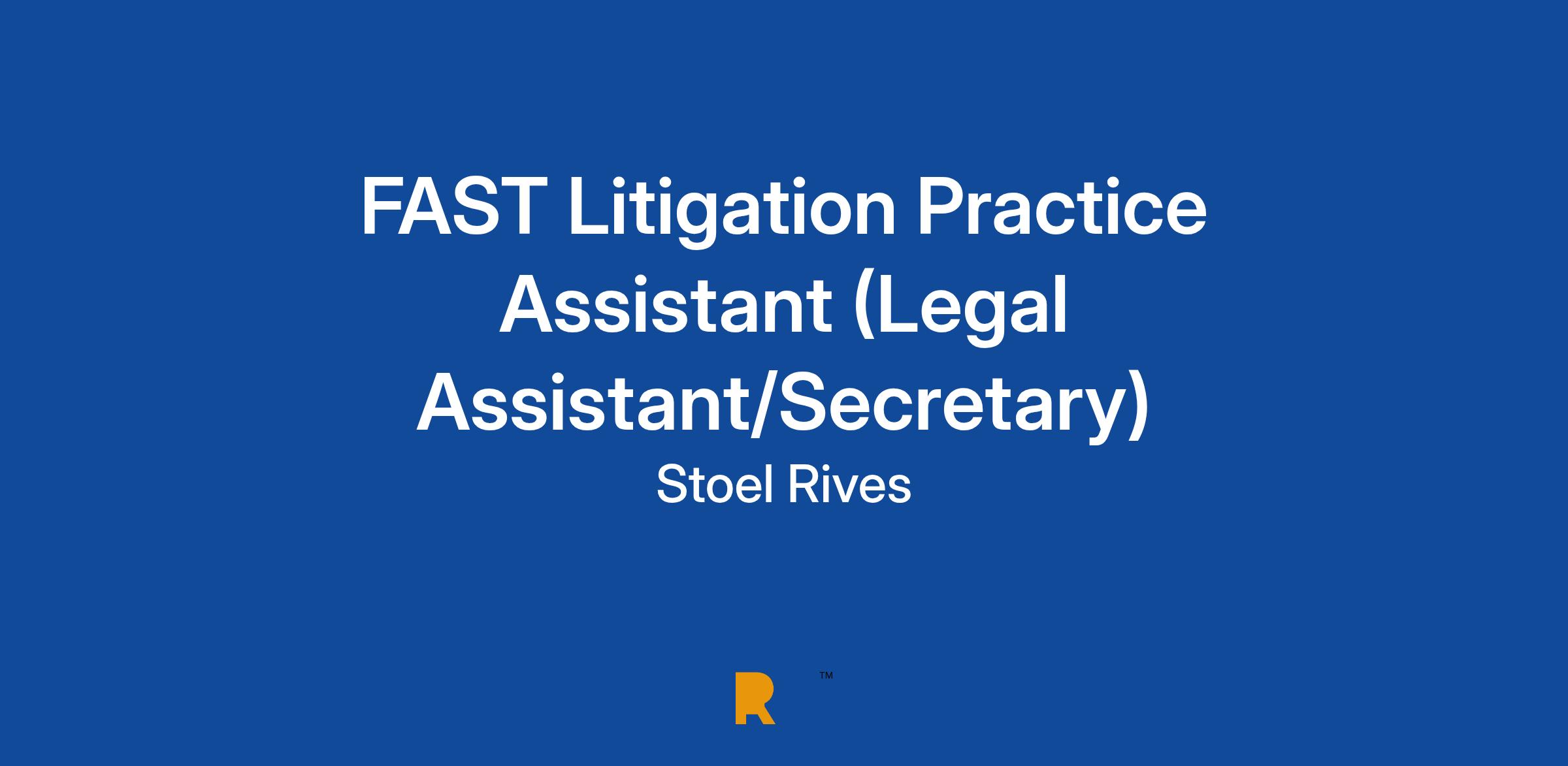 Stoel Rives LLP has an immediate opening for a FAST Litigation Practice Assistant. This position is a Practice Assistant on the Firm Administrative Support Team (FAST) specializing in litigation support. This position reports to the FAST Supervisor.