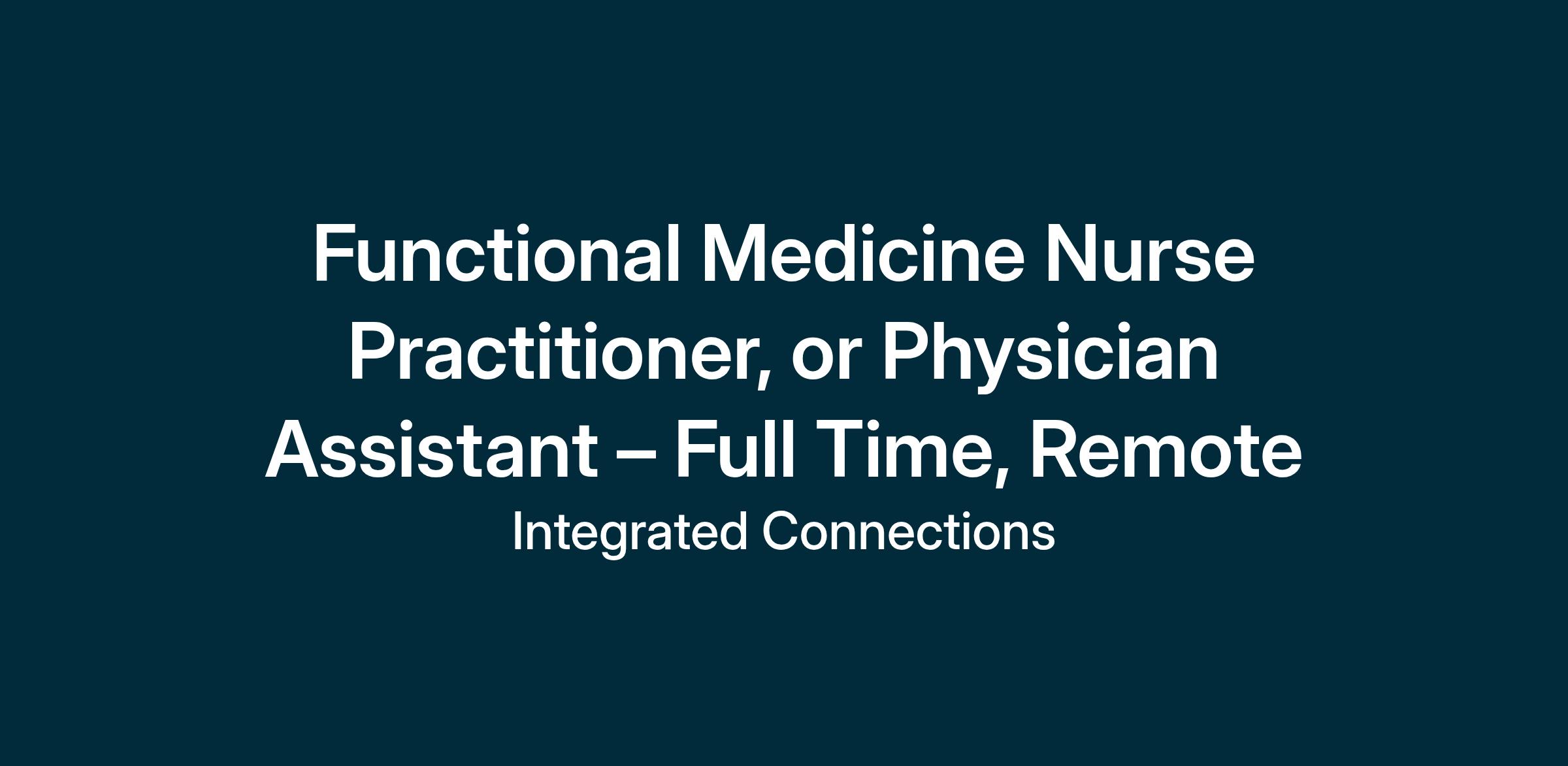 Our client is a nationwide network of personalized and innovative healthcare clinics designed to help patients achieve optimal health. They are currently seeking a Functional Medicine Nurse Practitioner, Physician Assistant, to join their growing team in a full- time, remote role.
