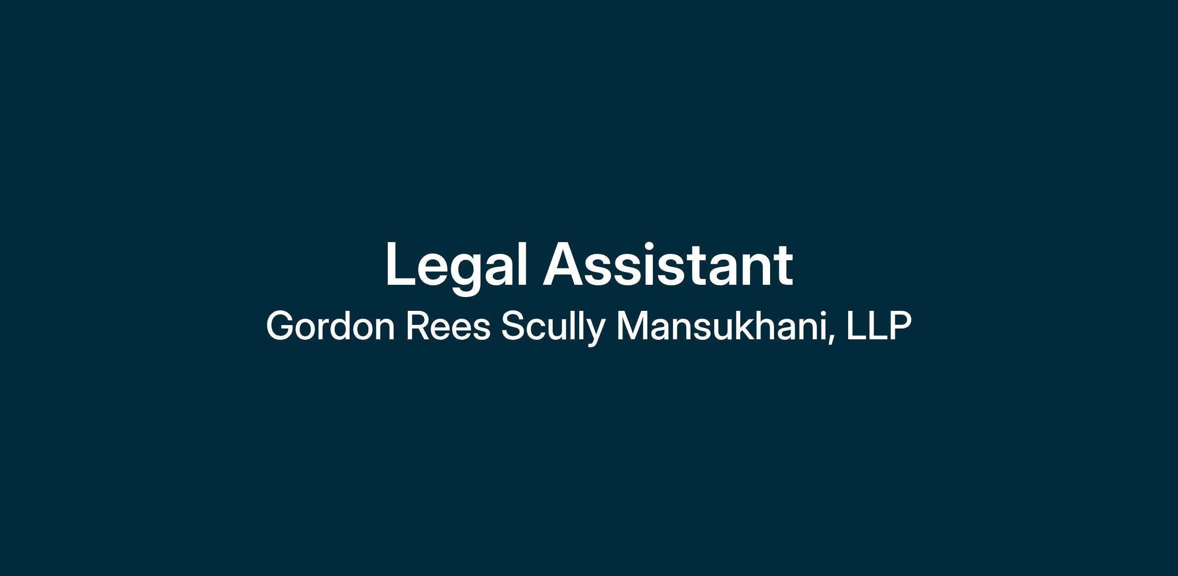 Gordon Rees Scully Mansukhani, a national law firm with offices in all 50 states, is seeking a Legal Assistant in its Chicago office’s Transactional Practice Group. Qualified candidates must have 2-4 years’ legal assistant experience, preferably in a law firm setting.