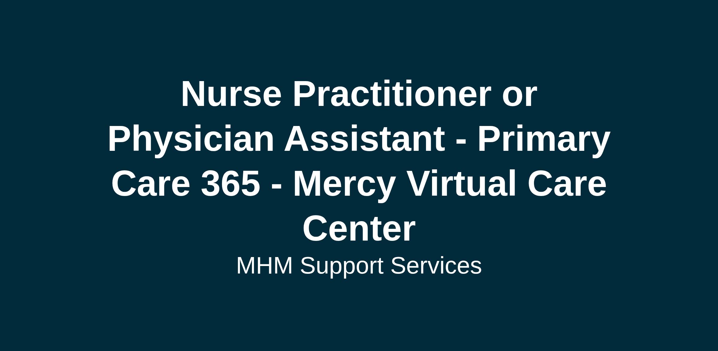 Mercy Virtual Primary Care 365 is powered by Physicians, Advanced Practitioners, and an engaged support staff focused on quality patient care.
