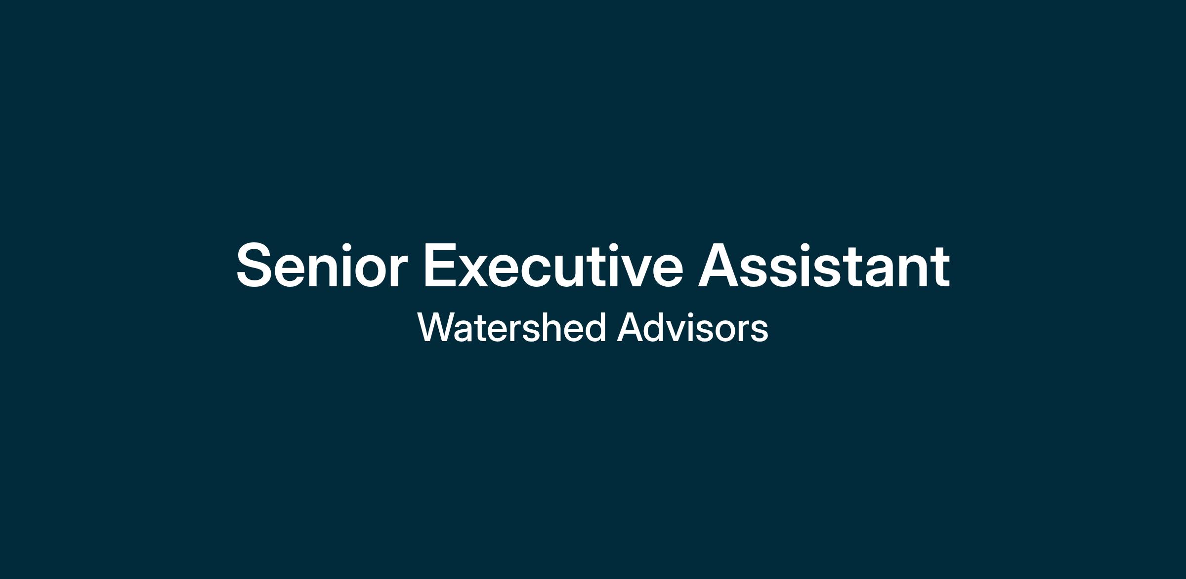 Watershed Advisors is looking for a Senior Executive Assistant to join our Operations Team. As a fully remote organization, our team is set up to work collaboratively on projects across the country every day. This role can be based anywhere in the United States.