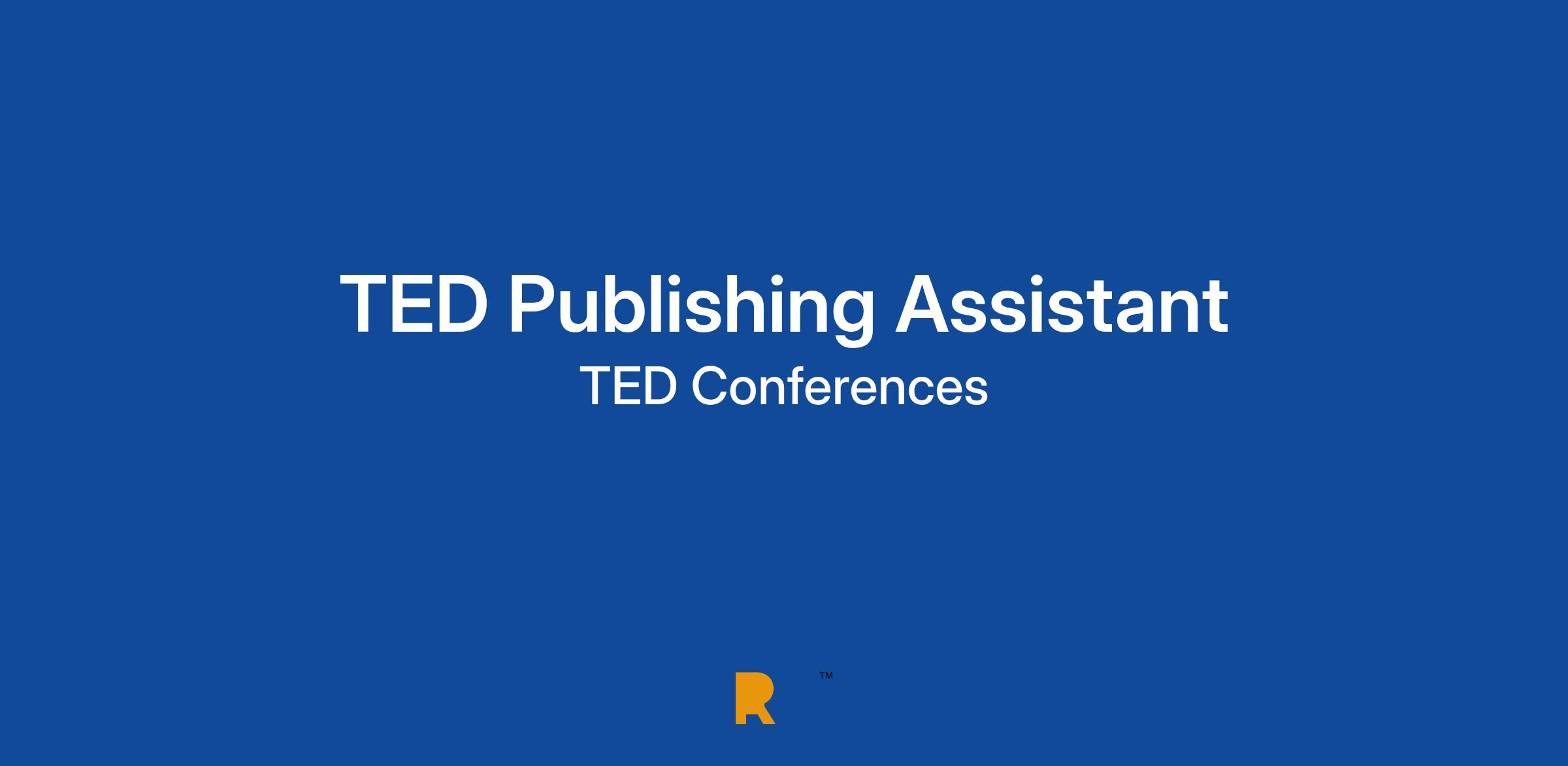 TED is looking for a detail-oriented publishing assistant with a sharp eye, boundless curiosity and an attitude of getting things done to assist in the day-to-day publishing of TED Talks and other editorial content. This is a great role if you're: incredibly detail-oriented; comfortable working in a fast-paced, collaborative environment; and passionate about TED's mission of spreading ideas. This is a six-month contract role.